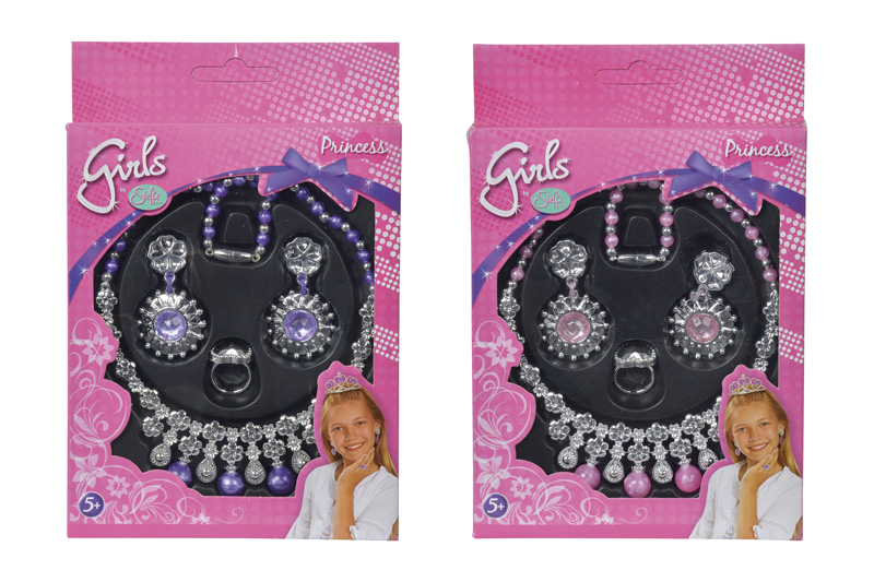 Набір прикрас "Коштовності для принцеси" з перлами, в двох видах: з рожевим камінням та перлами та фіолетовим. В набір входить намисто, сережки, перстень.