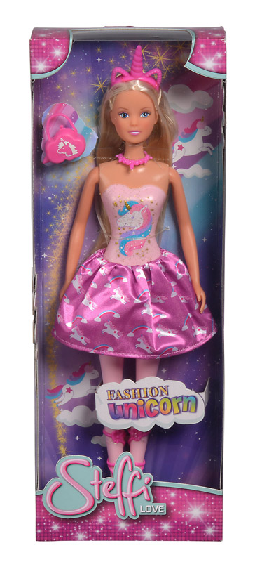 - лялька Штеффі у вбранні з принтом єдинорога;