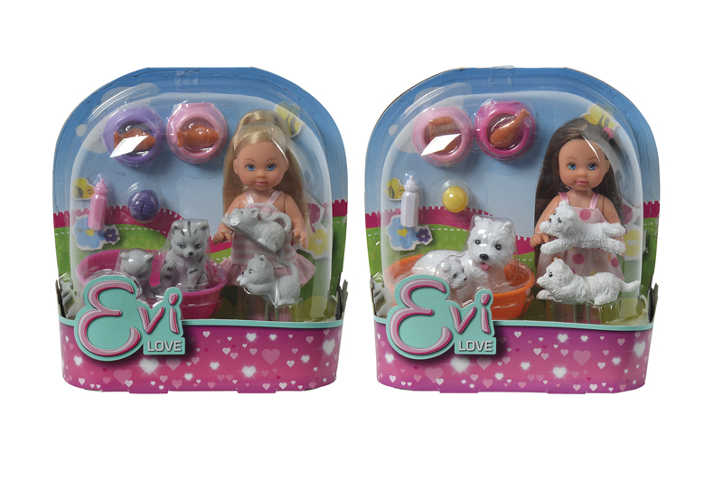 Еві доглядає за домашніми улюбленцями, в наборі: мисочки, пляшечка для годування, іграшки. Два види асортименту.