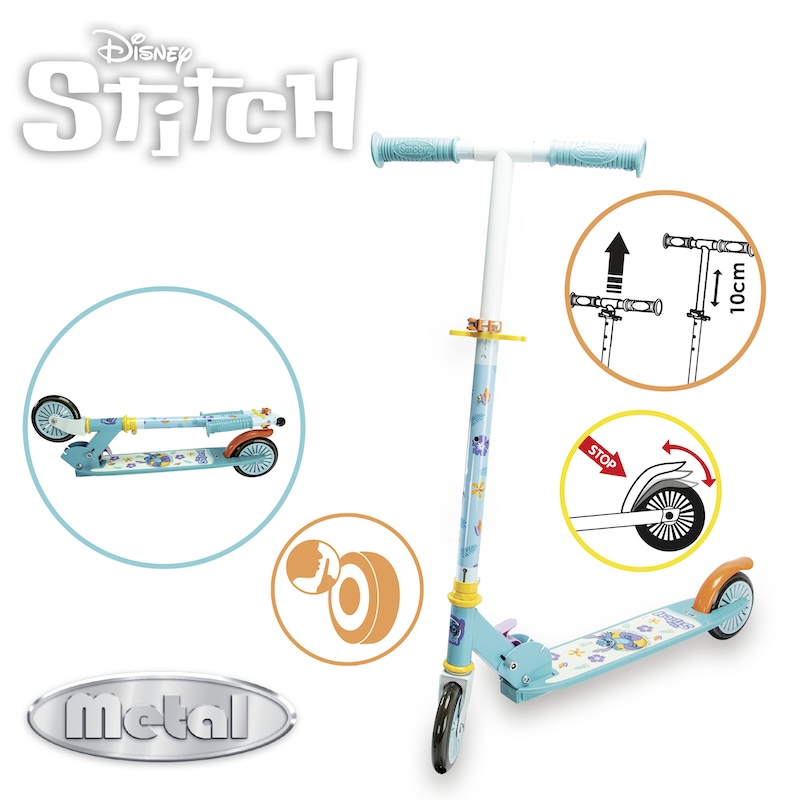 7600750379 Дитячий самокат "Дісней Стіч" розкладний з метал. рамою, двоколіс., 70х32х83 см, 5+