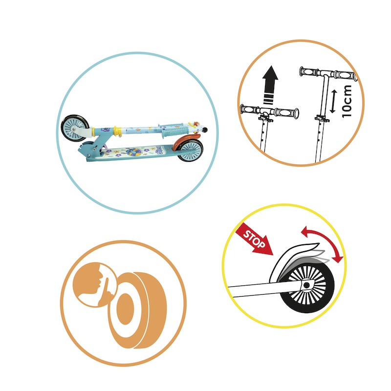 | Характеристика: - Дитячий самокат "Дісней Стіч"; - міцна металева рама; - регульоване кермо, зміна висоти у трьох положеннях: 73 см, 78 см, 83 см; - ручки керма з покриттям проти сковзання рук; - платформа з нанесенням яскравого малюнка стійкого до подряпин; - платформа має покриття проти сковзання; - м'які та безшумні колеса; - гальмо на задньому колесі додасть безпечності катанню; - самокат легко складається та забезпечує зручне транспортування; - виготовлений з високоякісних матеріалів; - витримує вагу до 50 кг; - має яскравий та сучасний дизайн; - розміри виробу: 70 х 32 х 83 см; Вік від 5 років. |