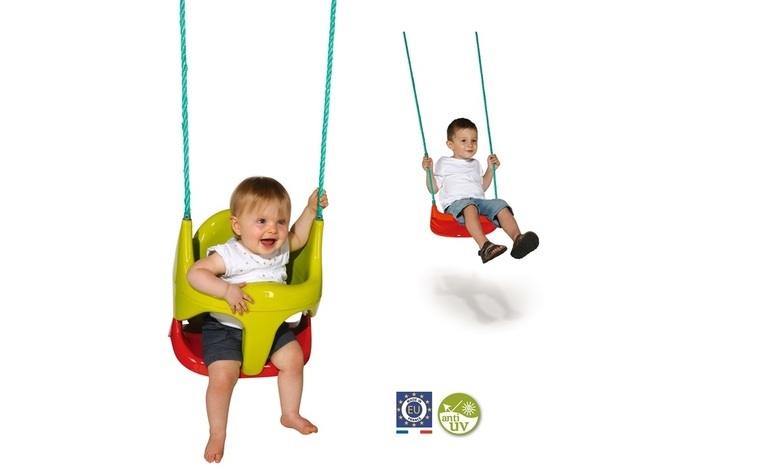 Гойдалка "2в1" на тросах. Гойдалка виконана зі зміцненого пластика. Пластик захищений від ультрафіолетових променів сонця. Загальна висота гойдалки 200 см.