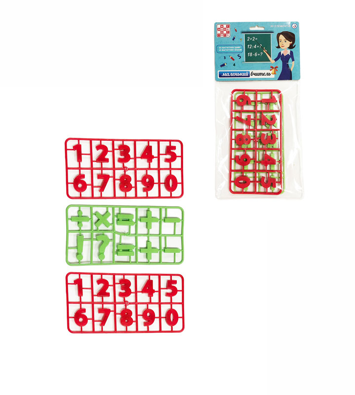 - всього у комплекті 30 елементів: 20 магнітних цифр та 10 магнітних знаків;